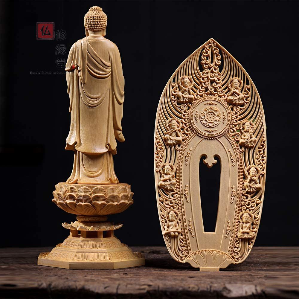 【修縁堂】木彫仏像 阿弥陀如来立像 阿弥陀仏 彫刻 一刀彫 天然木檜材 修縁堂】木彫り 仏像 阿弥陀如来立像 阿弥陀仏 精密彫刻 一刀彫 天然木