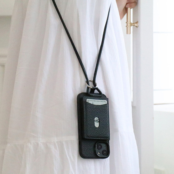 - スマートフォン・携帯電話 > iPhoneアクセサリー > Apple MagSafe対応 ブラック iPhoneケース ストラップ付き iPhone ケース MagSafe対応 スマホショルダー シュリンクレザー カード